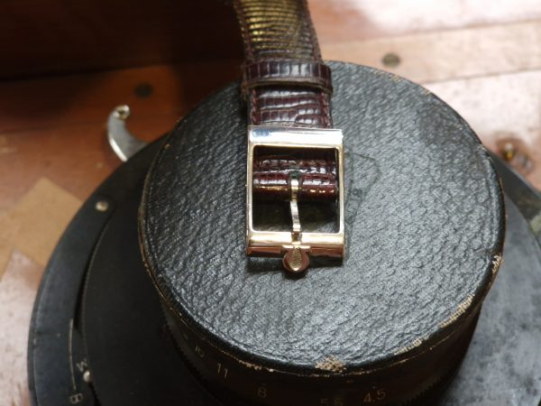 Elle est vendue avec un bracelet en lézard ancien 18/14 et une boucle d’origine en acier.