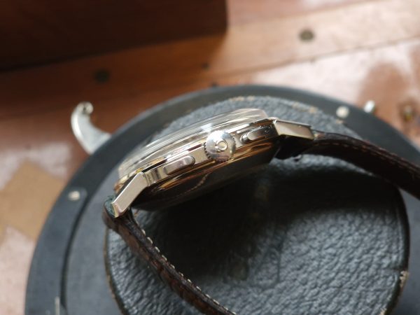Le 320 est un 321 sans compteur d’heures, ce qui le rend bien plus fin. Elle est sortie des ateliers Omega en 1965.